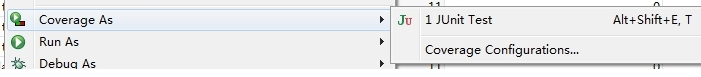 Eclipse+Junit可以直接观察简单的代码覆盖率,在运行的时候,选择Coverage As即可