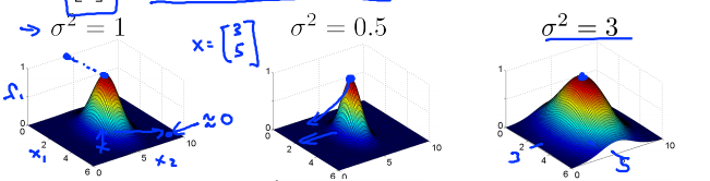 对于高斯核函数,σ对整体分布的影响为:σ越大,分布越扁平: