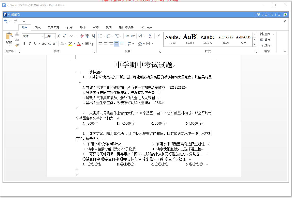 PageOffice for Java的开发包下载地址:http://www.zhuozhengsoft.com/dowm/ ,拷贝解压出来的 Samples4 文 件 夹 到 Tomcat 的 Webapps 目 录 下 , 访 问 : http://localhost:8080/Samples4/index.html,查看综合演示: 三、2、在Word文档中动态生成一张试卷