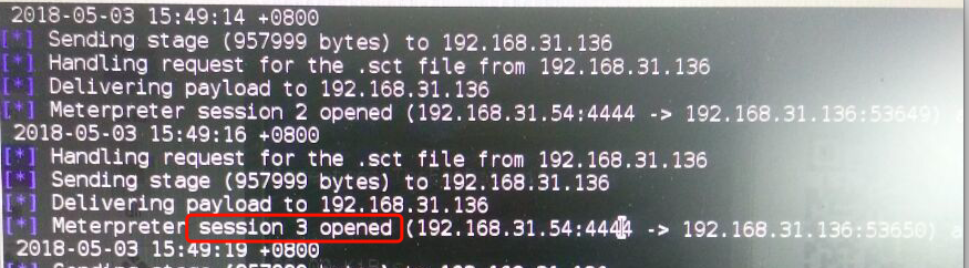 7.回到攻击机kai liunx就可以看到已经成功监听,并返回了一个session