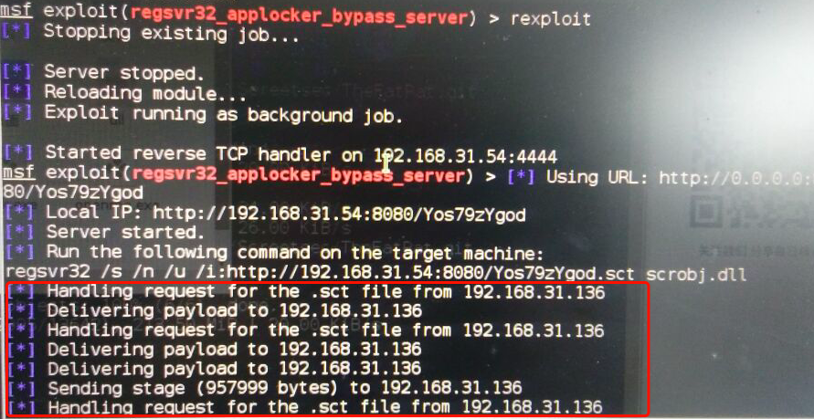 一.使用web_delivery模块的regsvr32_applocker_bypass_server