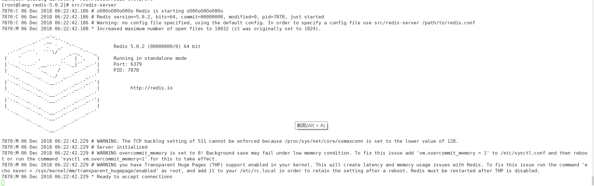 7897:C 06 Dec 2018 06:25:57.484 # Redis version=5.0.2, bits=64, commit=00000000, modified=0, pid=7897, just started