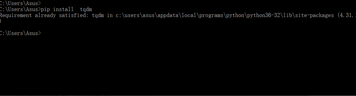 步骤2:输入pip install 你要安装的库(如 pip install tqdm) #pip一般是在安装python的时候就有了,还有tqdm我之前已经下载好了
