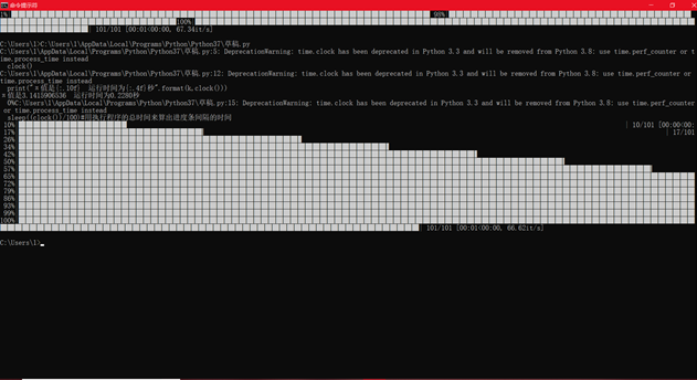 上周老师布置了一个课后作业,去尽可能的准确计算π的值,还要显示时间和进度条,对于python小白的我,当然是综合书上和网上的知识,自己做了一个小程序,代码如下: