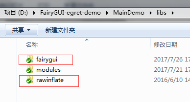 - 将FairyGUI库以及依赖的rawinflate库拷贝到libs目录。(如果你在编辑器发布时没有勾选