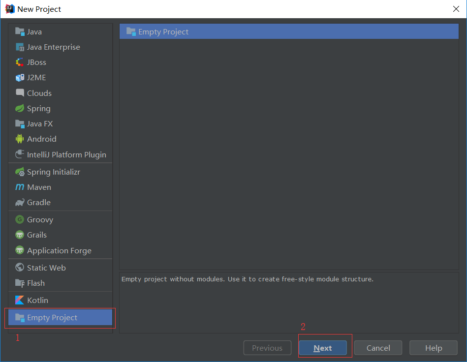 2、这里选择“Empty Project”,接着选择“Next”