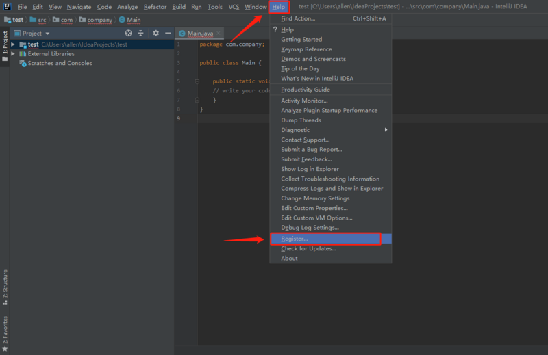 重启完成后,开始填入激活码,点击菜单栏 Help -> Register: