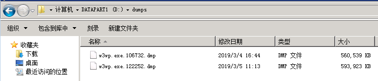 IIS崩溃后,会在D:\dumps里面生成一个dmp文件,如下