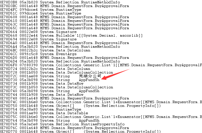 get_AppFundSh() 被大量的执行调用。问题发生在MPMS.Domain.RequestForm.BuyApprovalForm中的AppFundSh这个字段上。