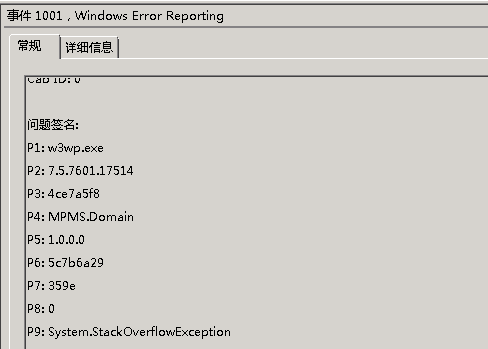 其实这个时候再通过事件查看器查看已经可以看出问题是栈溢出,和发生的对象信息是MPMS.Domain。