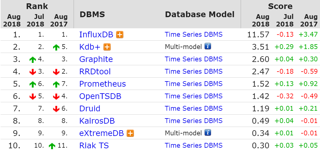 而在时序数据库TOP 10排名中,半开源的InfluxDB作为新一代时序数据库标杆,综合得分遥遥领先,因此在需要存储时序数据的应用场景中,InfluxDB无疑是首选。