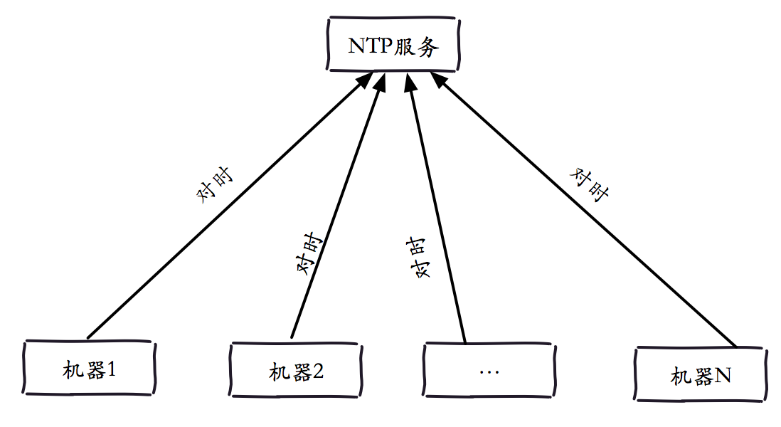 NTP(Network Time Protocol)网络时间协议,一种保证不同机器时钟一致性的服务。我们知道像Redis Sentinel和Redis Cluster这两种需要多个Redis实例的类型,可能会涉及多台服务器。虽然Redis并没有对多个服务器的时钟有严格的要求,但是假如多个Redis实例所在的服务器时钟不一致,对于一些异常情况的日志排查是非常困难的,例如Redis Cluster的故障转移,如果日志时间不一致,对于我们排查问题带来很大的困扰(注:但不会影响集群功能,集群节点依赖各自时钟)。一般公司里都会有NTP服务用来提供标准时间服务,从而达到纠正时钟的效果(如下图所示),为此我们可以每天定时去同步一次系统时间,从而使得集群中的时间是统一。