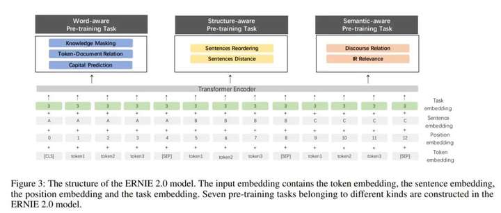 百度把语言模型的任务归类为三大类,模型可以持续学习新的任务。- 字层级的任务(word-aware pretraining task)
