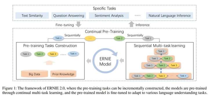 ERNIE 2.0: A Continual Pre-Training Framework for Language Understanding[5],百度ERNIE2.0 的出现直接刷新了GLUE Benchmark。
