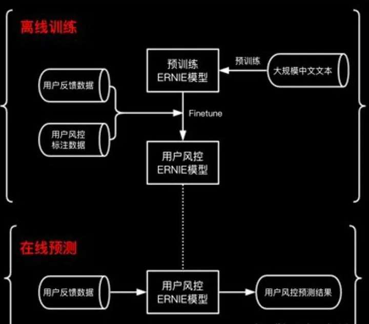 度小满的风控识别上:在ERNIE上直接进行微调预测有没有风险对应的结果。传统的缺点:需要海量的数据,而这些数据也很难抓取到的,抓取这些特征之后呢还要进行复杂的文本特征提取,比如说挖掘短信中银行的催收信息,对数据要求的量很高,对数据人工的特征的挖掘也很高。这两项呢造成了大量的成本,如今只需ERNIE微调一下,当时直接在召回的排序上得到25%的提升。这种场景的特点是什么?用户对于实时性的需求不是很强,不需要用户输入一个字段就返回结果。只要拿一天把所有数据跑完,得到结果就可以了,统一的分析就可以了,适合少数据的分析场景。