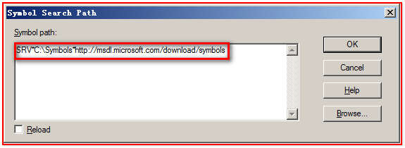 // 要注意的是,使用.sympath改变或新增符号路径后,符号文件并不会自动更新,应再执行.reload命令手动更新。