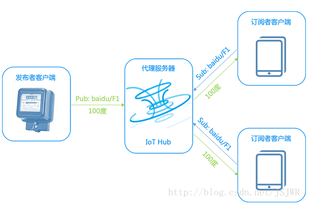 一个完整的MQTT示例包括代理器,发布者和订阅者。