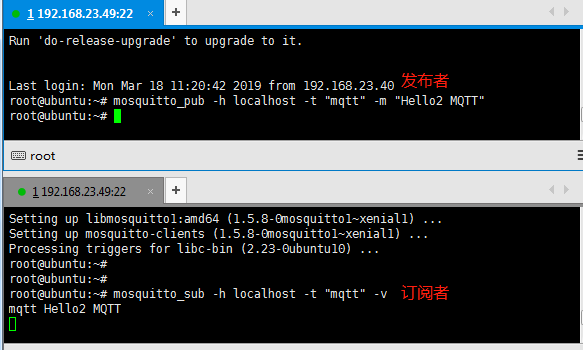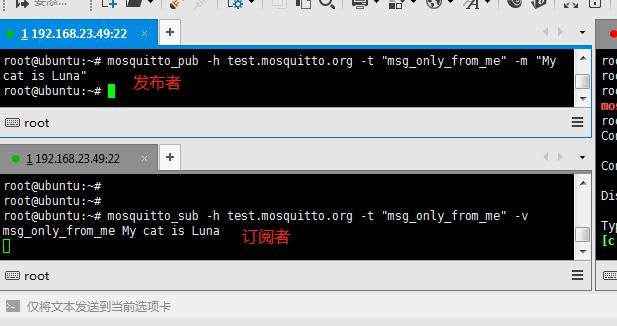 (2)订阅者通过mosquitto_sub订阅指定主题的消息。