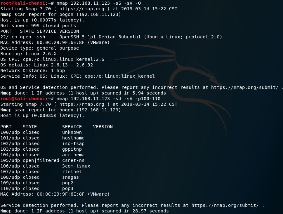 namp -A包含了1-10000端口的端口扫描、操作系统扫描、脚本扫描、路由跟踪、服务探测。 nmap -Pn扫描前不进行ping操作