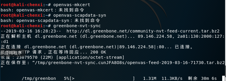 openvas-scapdata-sync和openvas-certdata-sync更新漏洞信息库内容(可能需要一两个小时)。 - 结束openvasssd进程,重新启动服务