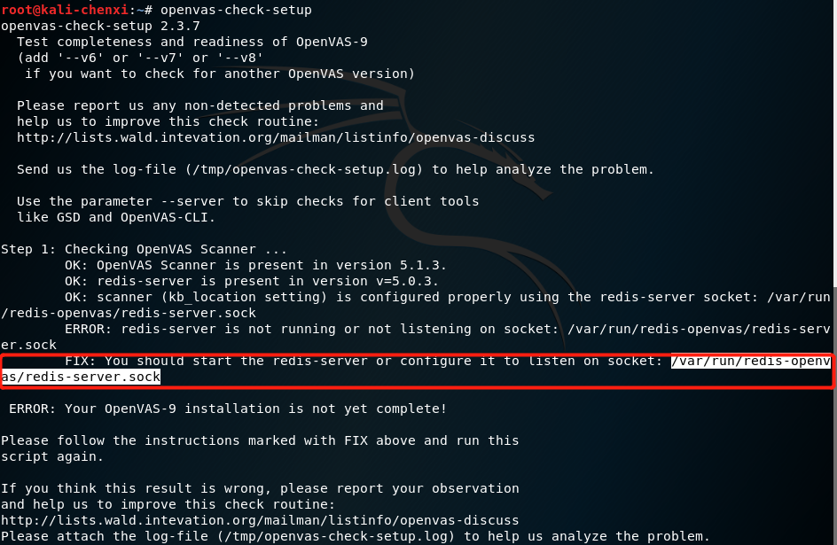 openvasmd,使用openvas-check-setup检查无误。 - 默认已经打开服务,或手工转发端口