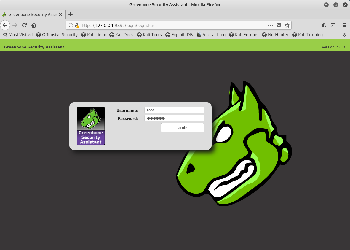 gsad --listen=0.0.0.0 --port=9392 --alisten=127.0.0.1 --aport=9393 --mlisten=127.0.0.1 --mport=9390 --http-only。 - 访问本地http://localhost:9392/登录。