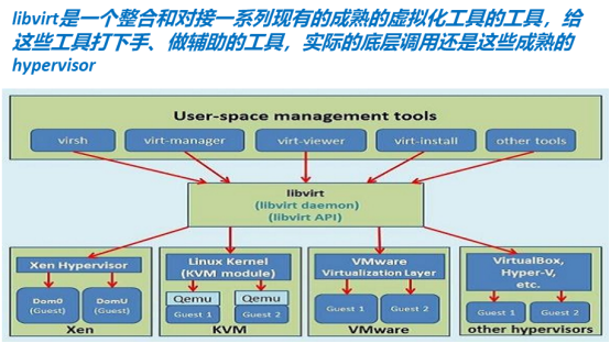 Libvirt与hypervisor无关,其提供与多种操作系统虚拟化能力进行交互的API与工具库。