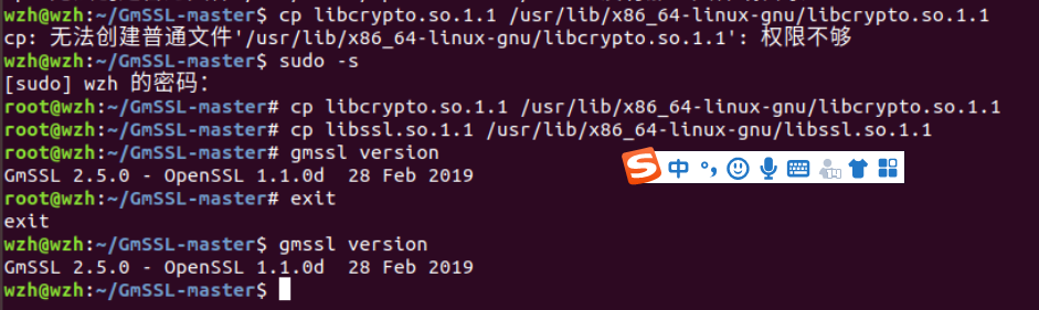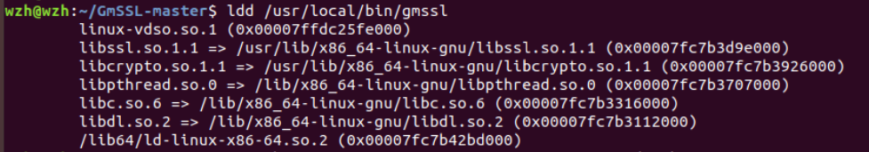 这个是我出现的最主要的问题,开始的时候去尝试了蓝墨云中同学们的解答,但尝试后发现依旧不可以,仔细对比后发现错误提示不相同,也就是说出现错误的原因是不一样的,出现这个错误提示的原因是gmssl依赖库路径的问题,libssl.so.1.1和libcrypto.so.1.1没有安装到gmssl的依赖库中,具体解决办法参考连接如下