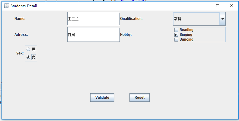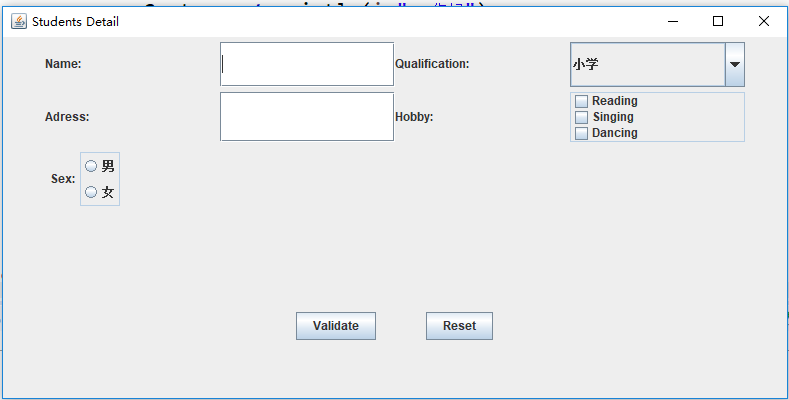 (2)用户点击重置按钮后,清空用户已输入信息;