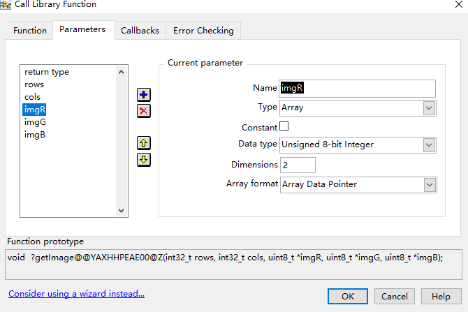 _declspec(dllexport) extern void getImage(int rows, int cols, unsigned __int8 *imageR, unsigned __int8 *imageG, unsigned __int8 *imageB)
