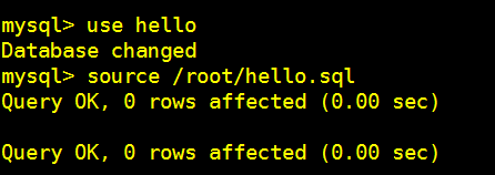 13,由于操作失误,误删除了数据库,所有数据都不见了,此时可以通过binlog日志恢复数据,由于之前有做了数据库备份,所以可以先将备份的数据导入进去,剩下缺少的就是备份之后操作所产生的内容(备份之后执行了插入内容以及更改内容),先恢复备份的数据:创建库hello并选择库(use hello),通过命令source /root/hello.sql将数据库内容导入,然后执行