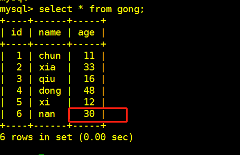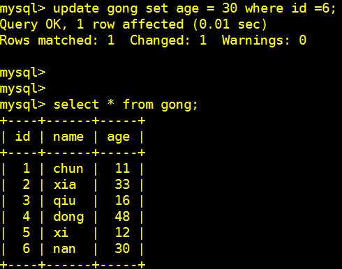 数据,修改数据,如图新增了两条数据id 为5和6,修改后数据如图,