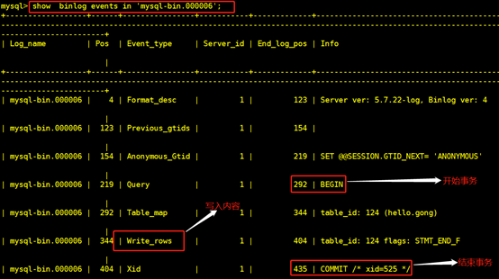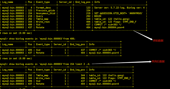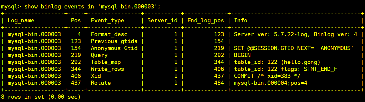 9,上面的方法读取内容较多不易观察,以下命令更为方便查看命令:show binlog events in ‘mysql-bin.000003’;