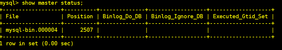5,查看最后一个binlog日志的编号名称及其最后一个操作事件pos结束点的值:show master status;