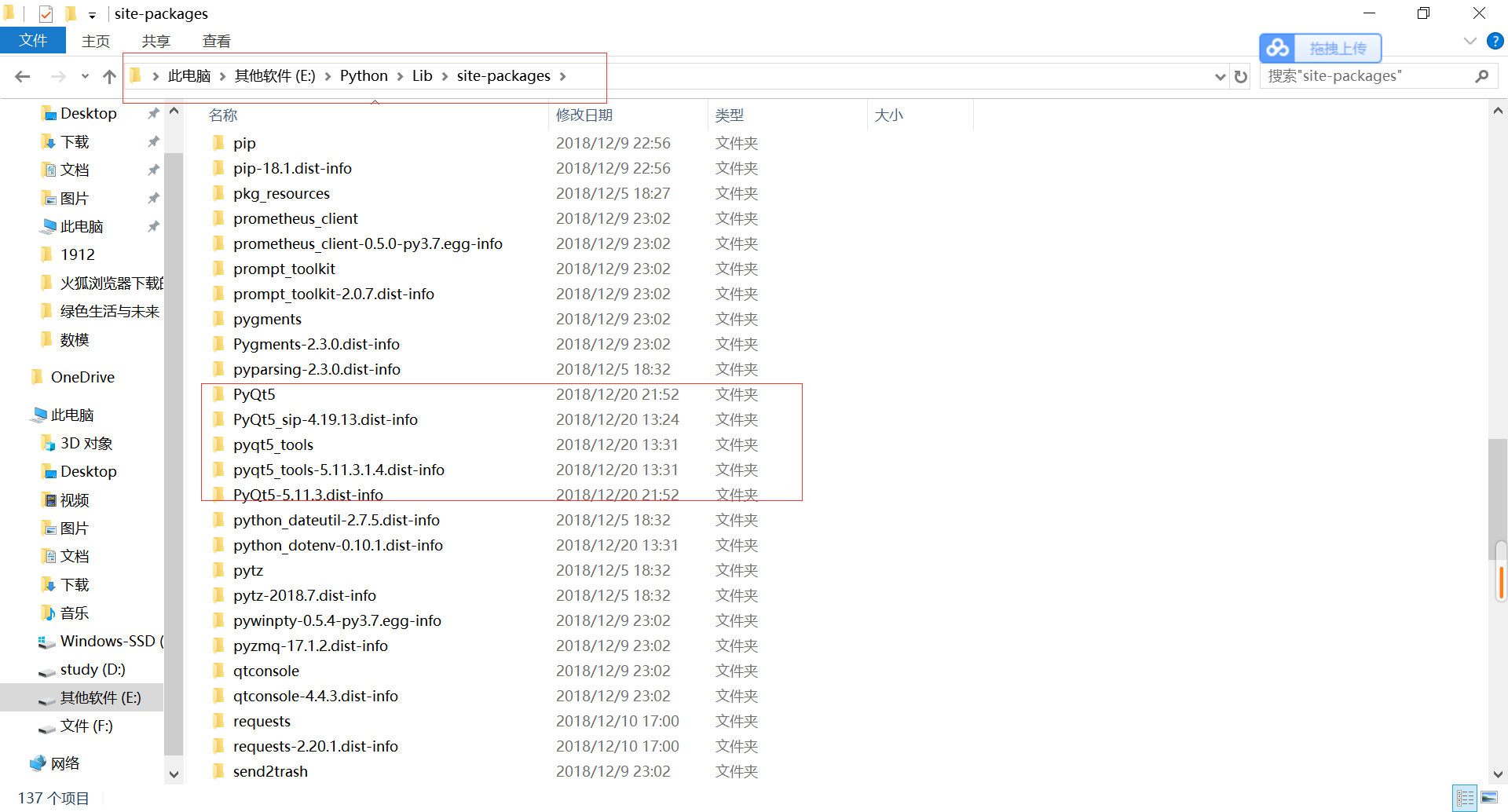 pip安装方式默认的安装路径在python的安装路径下,在我的电脑上是