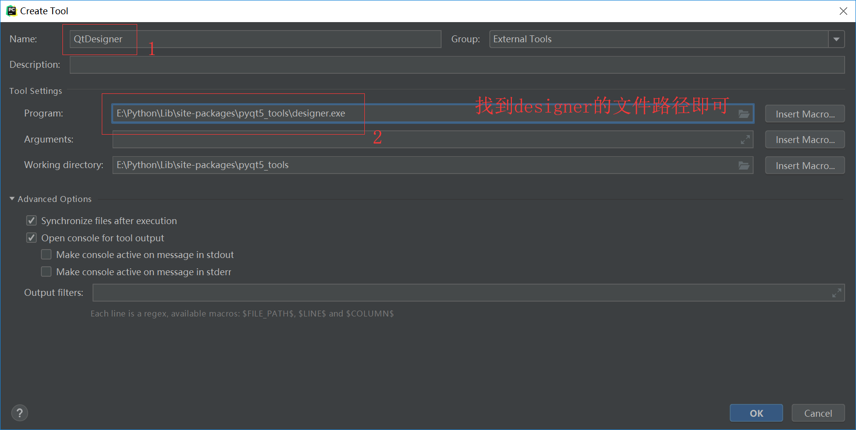 配置过程和前面配置QtDesigner的过程大致相同。在最后一步略有差别