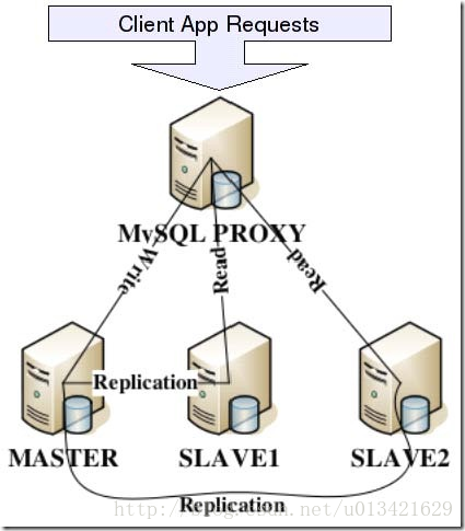 MySQLProxy实际上是在客户端请求与MySQLServer之间建立了一个连接池。所有客户端请求都是发向MySQLProxy,然后经由MySQLProxy进行相应的分析,判断出是读操作还是写操作,分发至对应的MySQLServer上。对于多节点Slave集群,也可以起做到负载均衡的效果。
