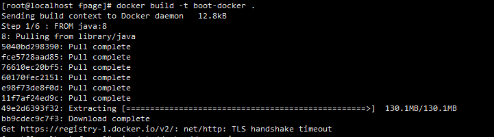 [ERROR] Failed to execute goal com.spotify:docker-maven-plugin:1.2.1:build (build-image) on project freemarker-page-demo: Exception caught: Get https://registry-1.docker.io/v2/library/java8/manifests/latest: Get https://auth.docker.io/token?scope=repository%3Alibrary%2Fjava8%3Apull&service=registry.docker.io: net/http: TLS handshake timeout -> [Help 1]