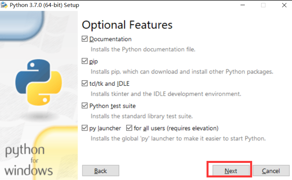 2.1、python运行环境安装 双击python-3.7.0-amd64.exe