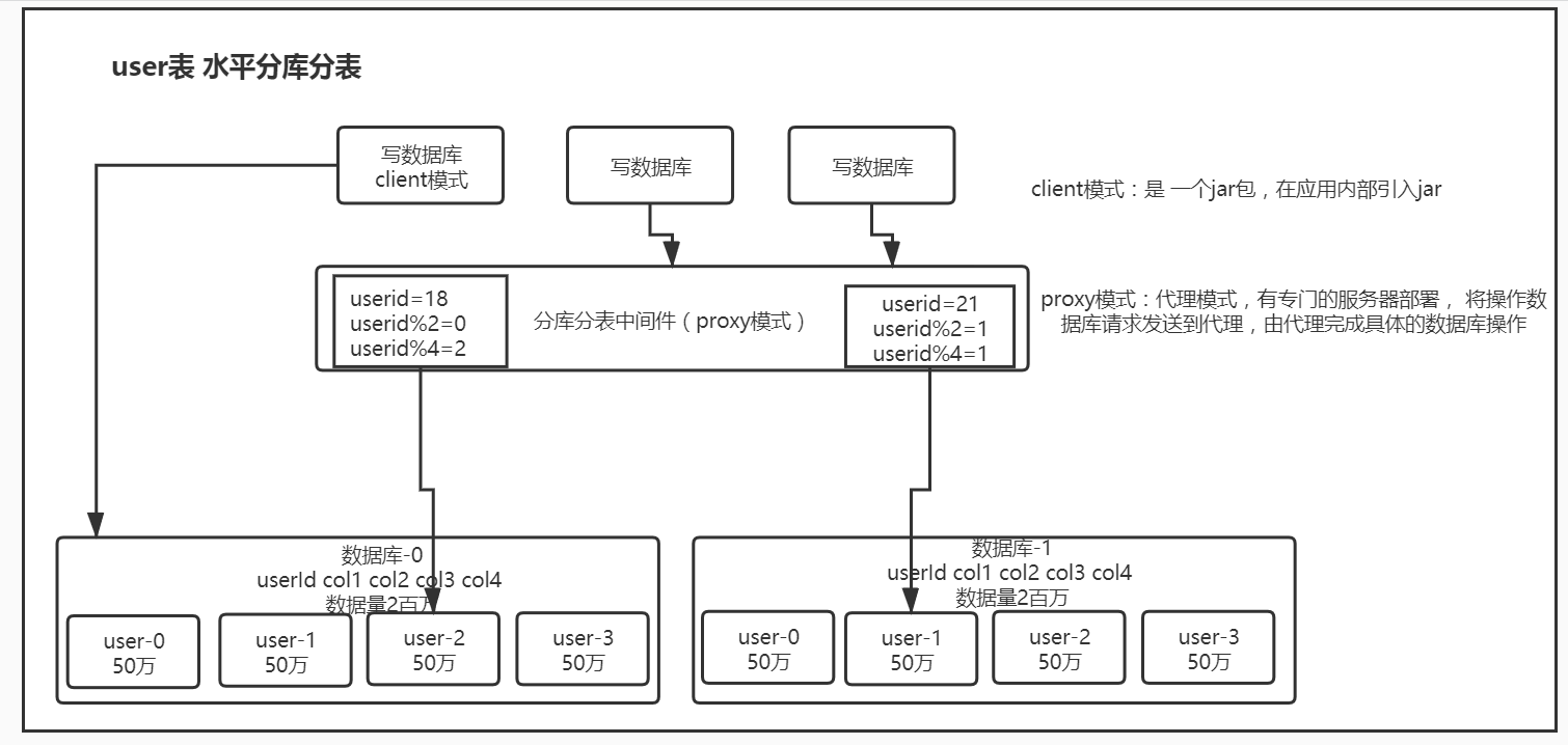 - 分库分表中间件?中间件有client类型,proxy类型