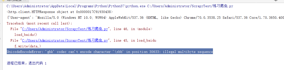 以上代码出现“UnicodeEncodeError: 'gbk' codec can't encode character '\xbb' in position 30633: illegal multibyte sequence”,应该是with里面的编码没有指定编码格式报错的。所以指定一下编码格式为utf-8j就行