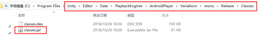 先说这个文件在哪,在你所使用的Unity的安装目录里面,这里需要注意呀,不是什么版本的Unity的这个classes.jar都能用的,必须是你Unity工程所使用的版本的安装目录