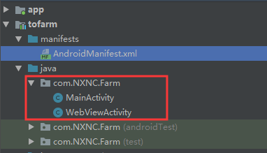 (4)创建WebViewActivity类,切换回Android视图找到我们的MainActivty,这个都会在app\java\第一个包名的文件夹下