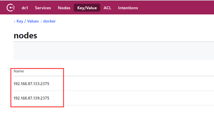 出现上边的两个节点,分别是两个docker daemon (守护进程) 注册的值