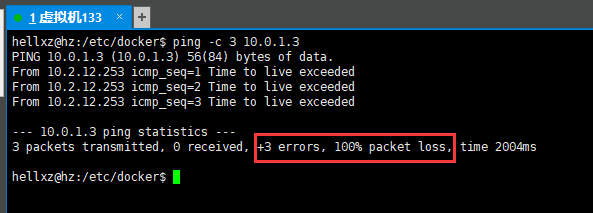 分别从133服务器ping 139服务器的mycentos2的内网IP