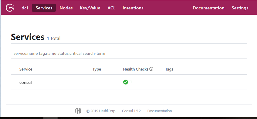 $ docker run -di -h consul -p 8500:8500 --name=consul consul:1.5.2