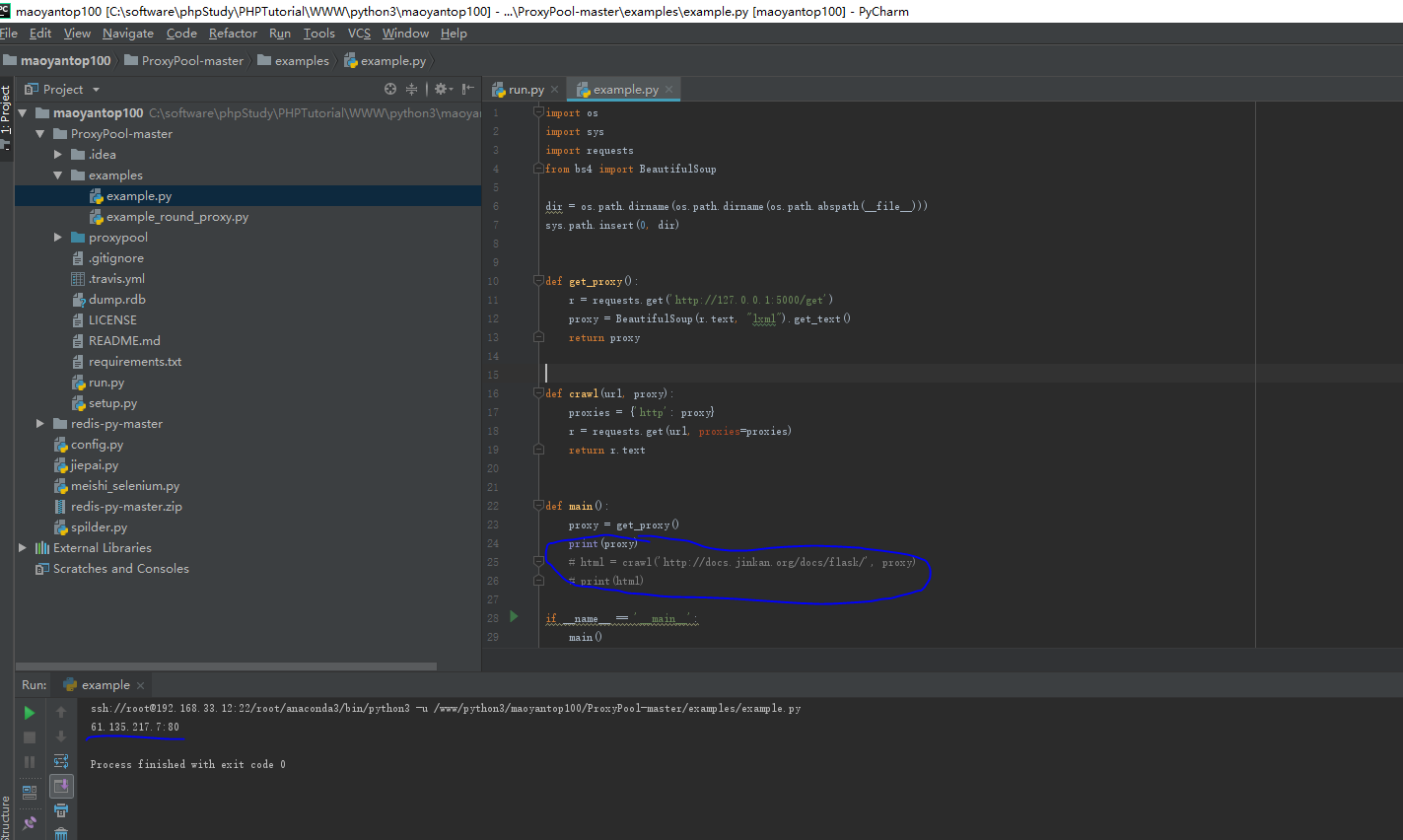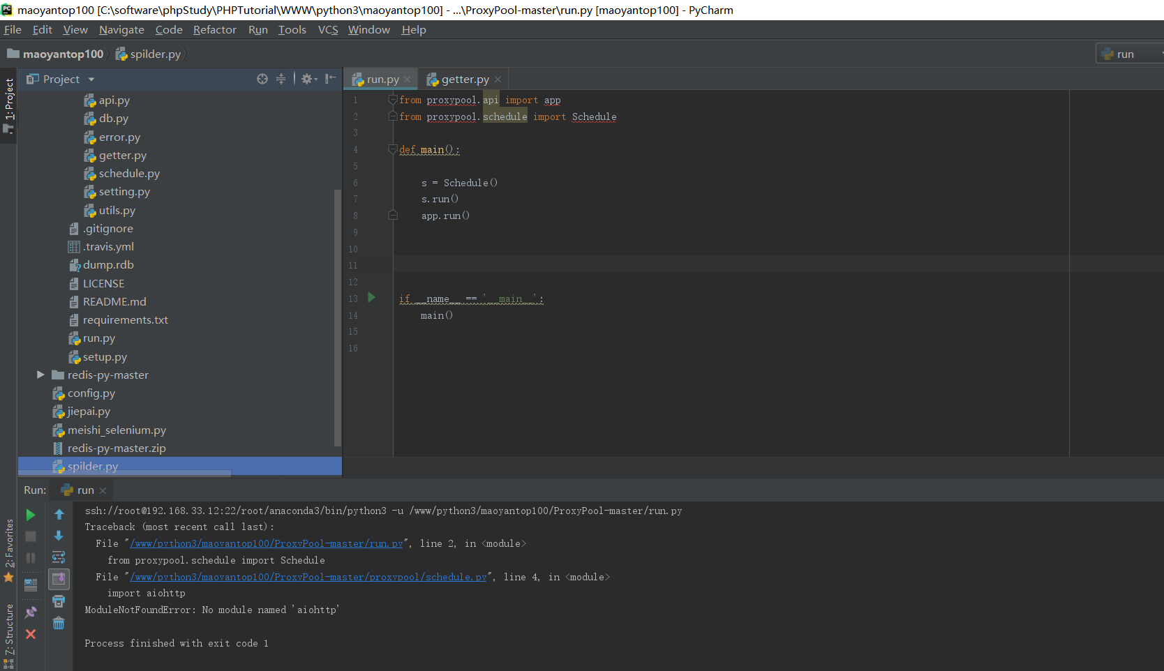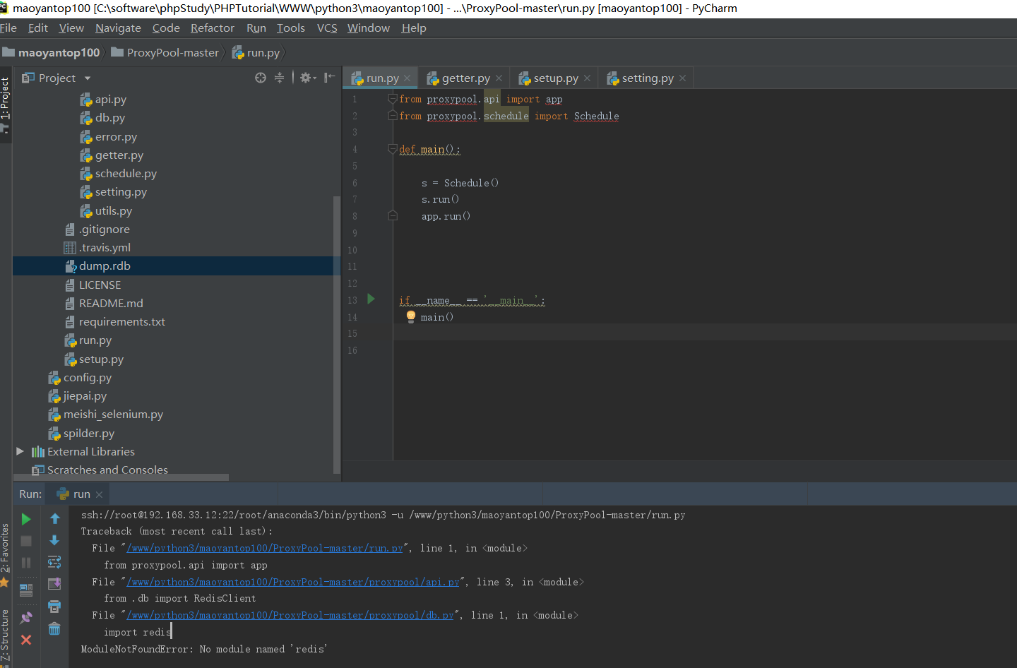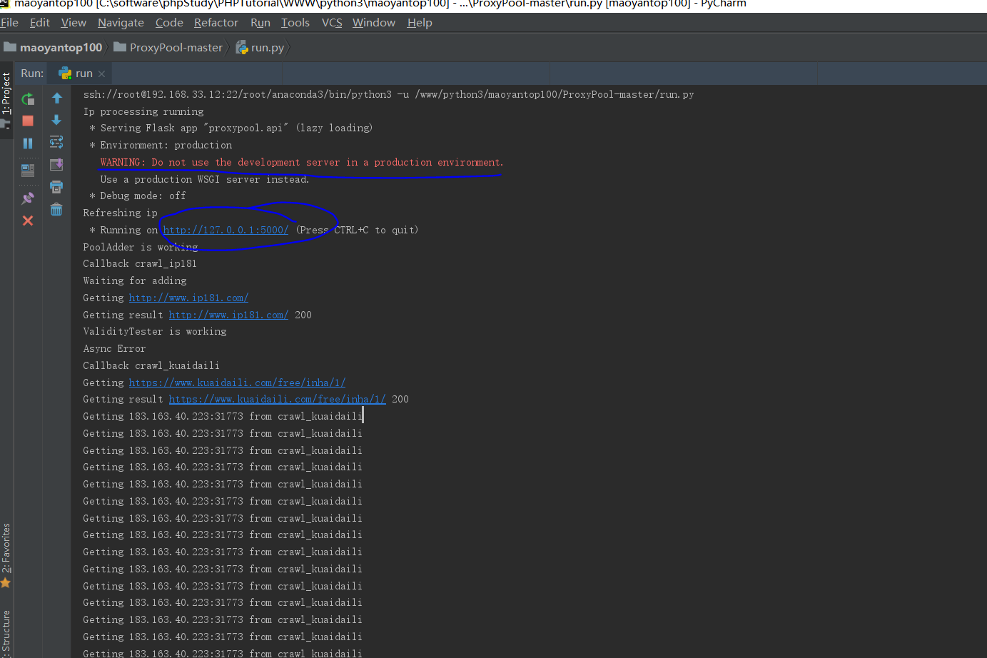 代理池启动类,运行RUN函数时,会创建两个进程,负责对代理池内容的增加和更新。
