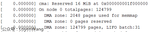 zone中的freesize表示可用的区域,需要减去memmap_pages和DMA_RESERVE的区域,如下图在开发板的Log打印所示:memmap使用2048页,DMA保留0页;