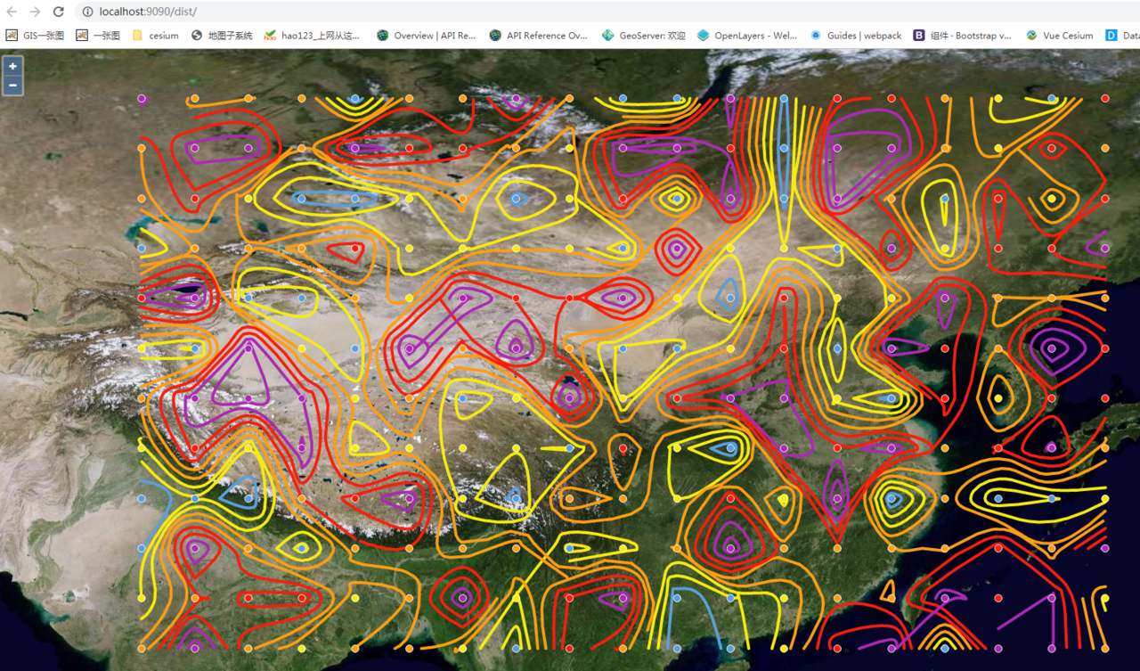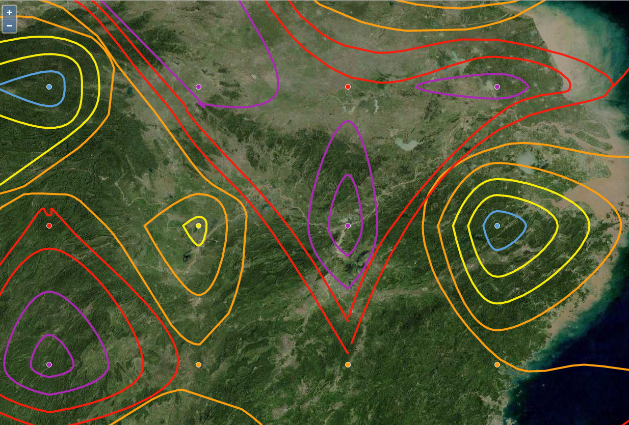 - 关键函数turf.isolines,采用具有z值和值中断数的 Point 要素的网格 FeatureCollection 并生成等值线