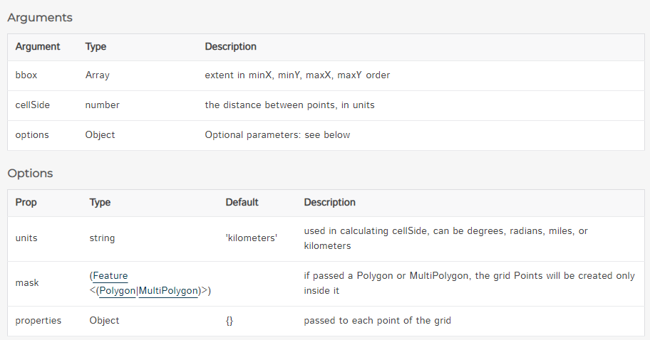 - 关键函数 turf.pointGrid,从边界框,FeatureCollection 或 Feature创建点网格